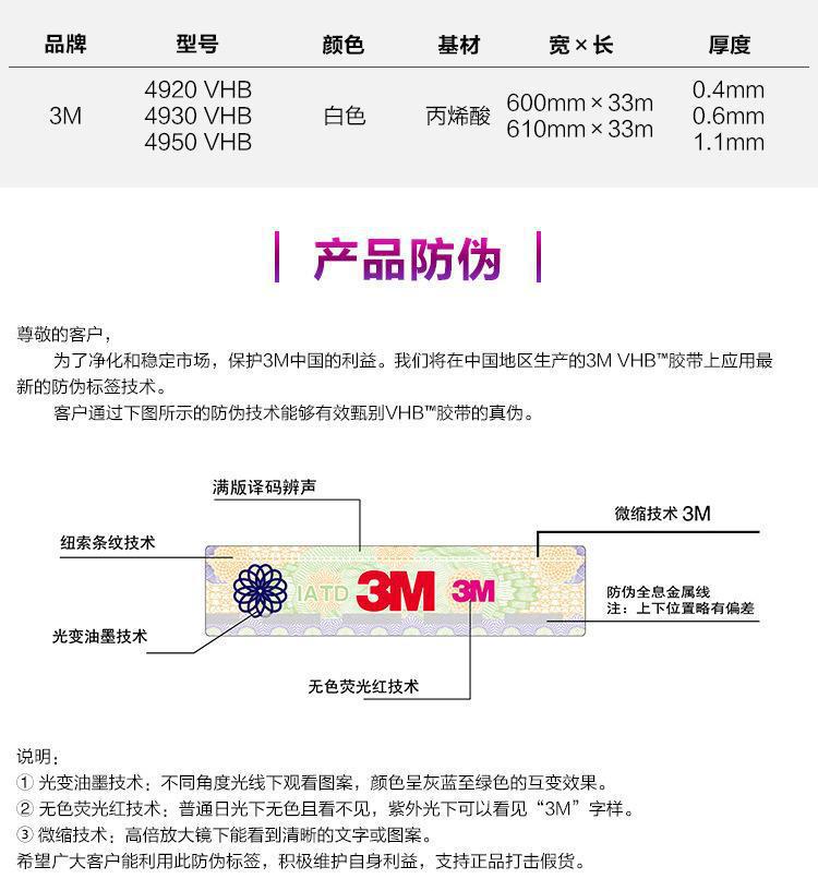 基材:丙烯酸泡棉 厚度:1.1mm 長度:33M 產(chǎn)地:3M美國